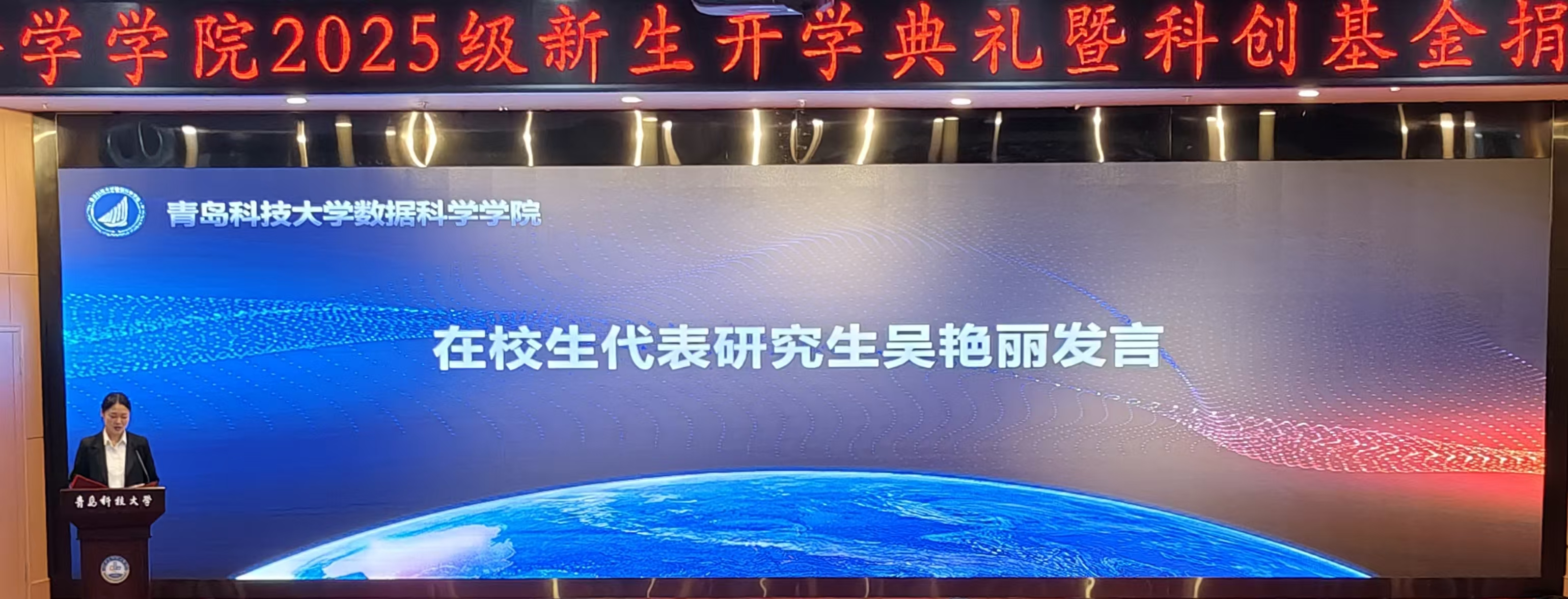 在校生代表、2023级研究生吴艳丽分享了自己在学院的成长故事,向新生发出了三点倡议:一是扎根专业,筑牢根基;二是投身实践,敢于跨界;三是心怀家国,矢志奋斗。