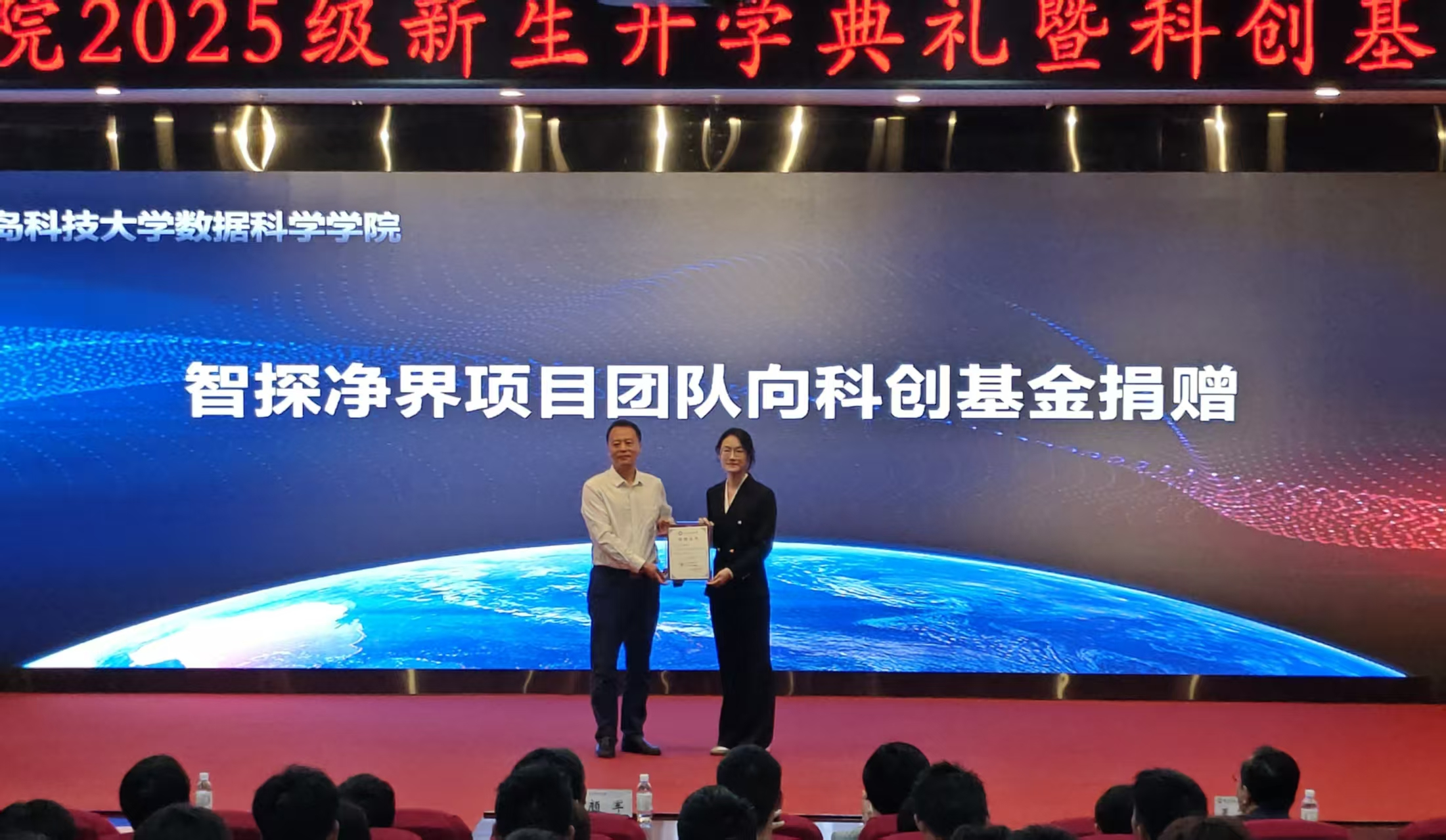 在科创基金捐赠仪式上,学院首个中国国际大学生创新大赛的国家级银奖《智探净界》团队向学院科创基金捐赠人民币5万元,学院常务副院长杜军威老师接受捐赠并向团队颁发捐赠证书。该笔资金将专项用于支持学院学子开展科创项目研究,为学生创新创业实践提供坚实保障,进一步激发全院学生的科研热情与创新活力。