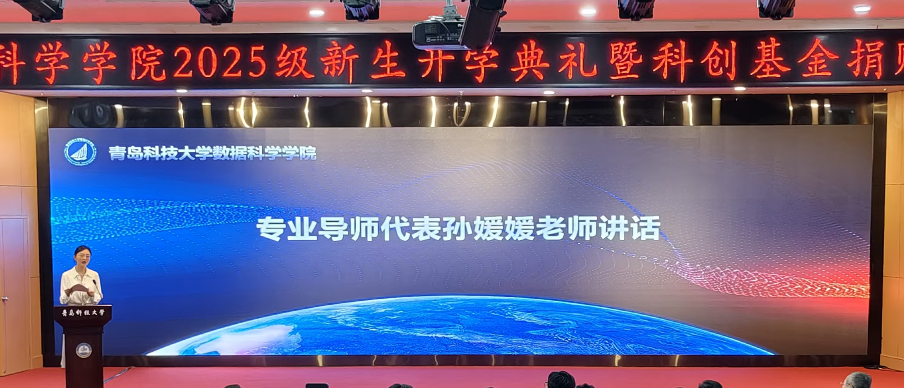 接着,专业教师代表孙媛媛结合自身教学科研经历,鼓励新生在数据科学领域深耕探索,将专业知识转化为解决实际问题的能力,她寄语大家要勇于挑战未知,在实验室与项目实践中锤炼本领,以扎实学识开启大学精彩征程。